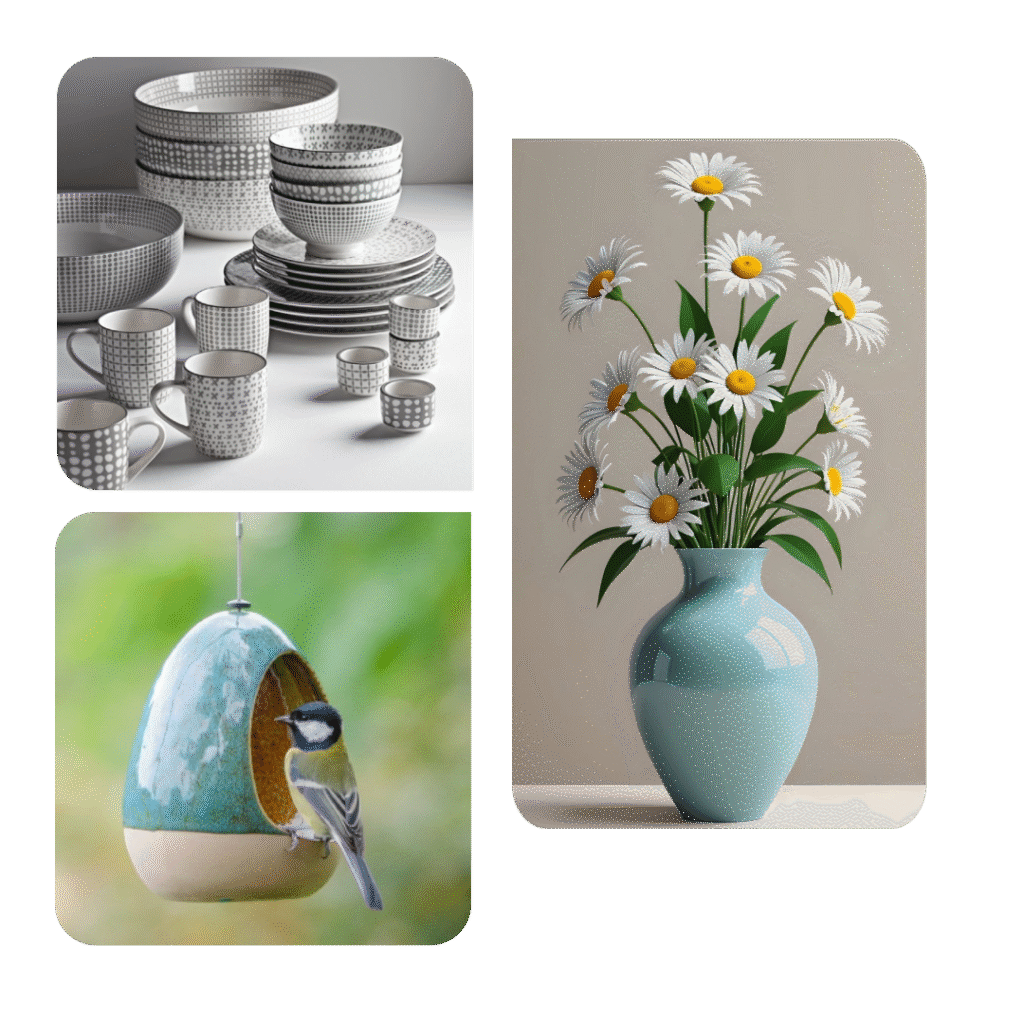 Our ceramic handicrafts are known for their fine finishing, intricate designs, and durability. From decorative vases and tableware to artistic home décor pieces, every product is made with precision and passion. We use high-quality materials and eco-friendly processes to ensure that our ceramics not only look stunning but also stand the test of time.